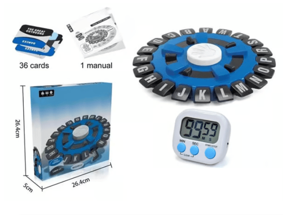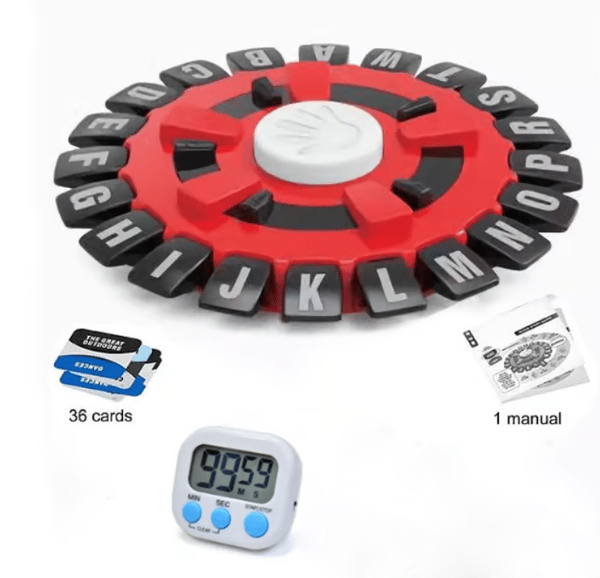 - The quick word game that gives players a thrill as they compete to beat the clock! Challenge friends and family to tap letters of the portable wheel as you come up with words for different categories before the ten-second timer runs out! Just say a word, beat the timer, and win!